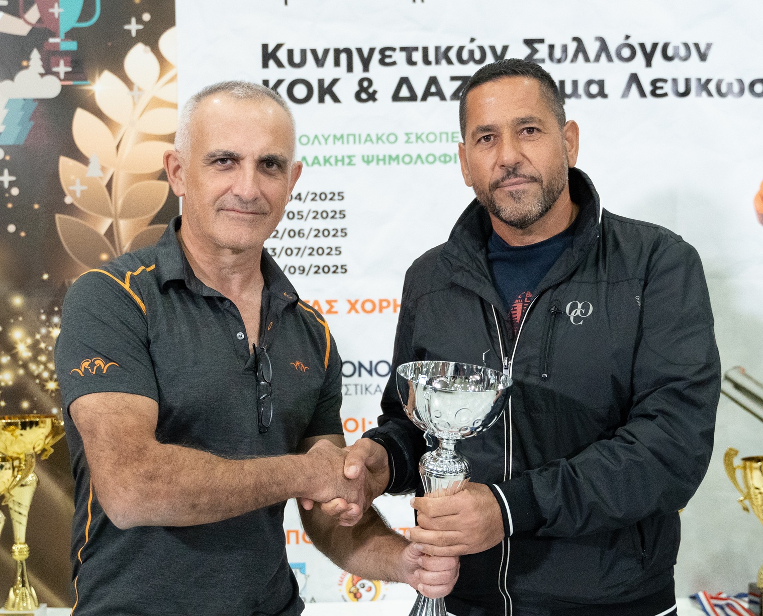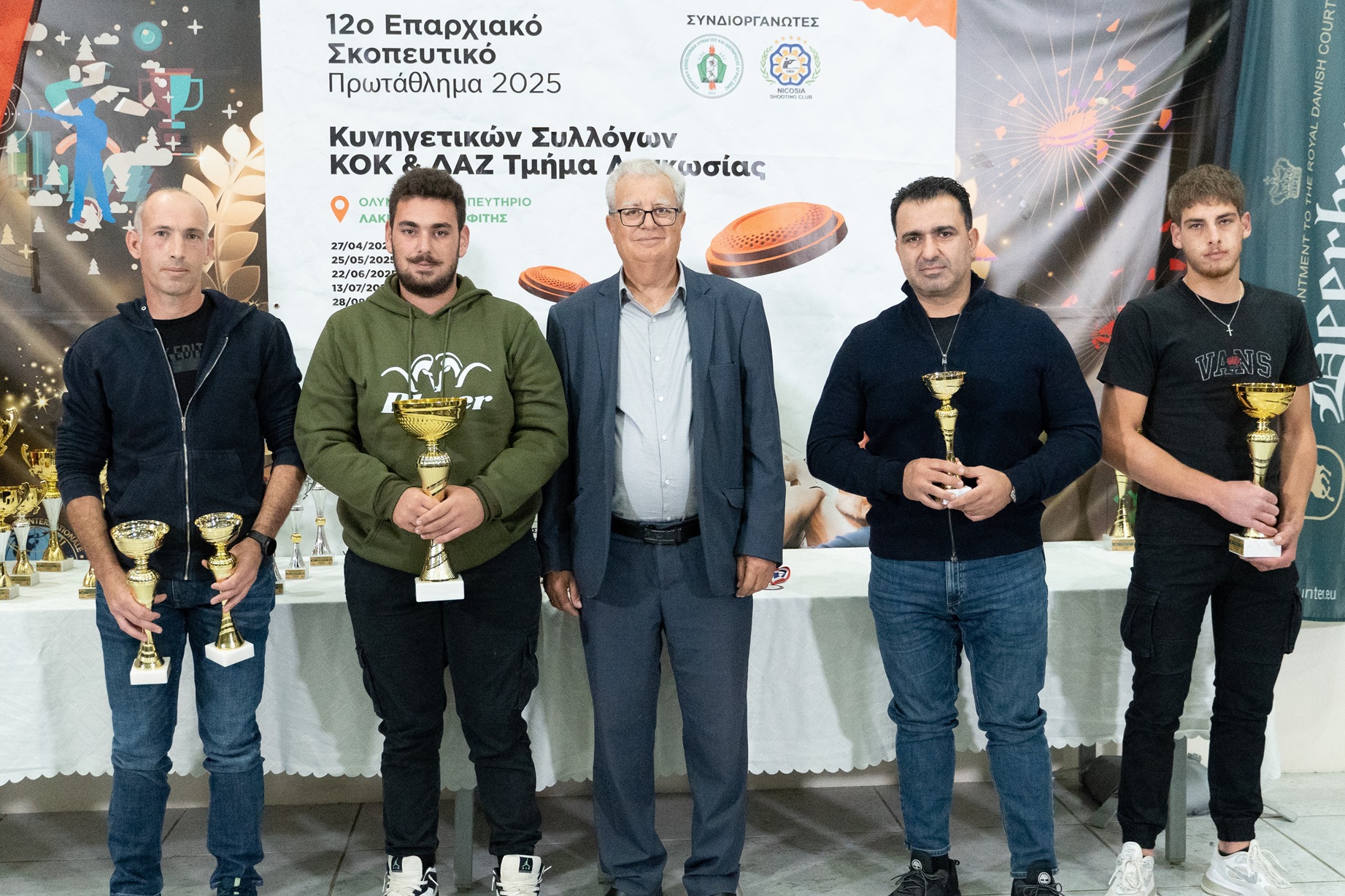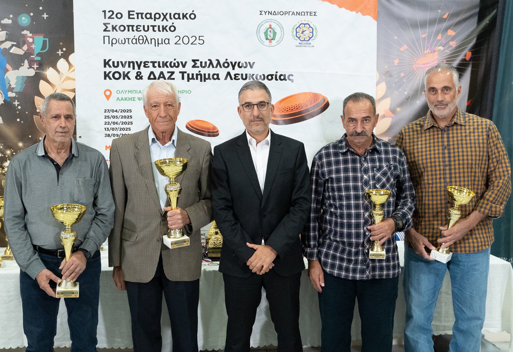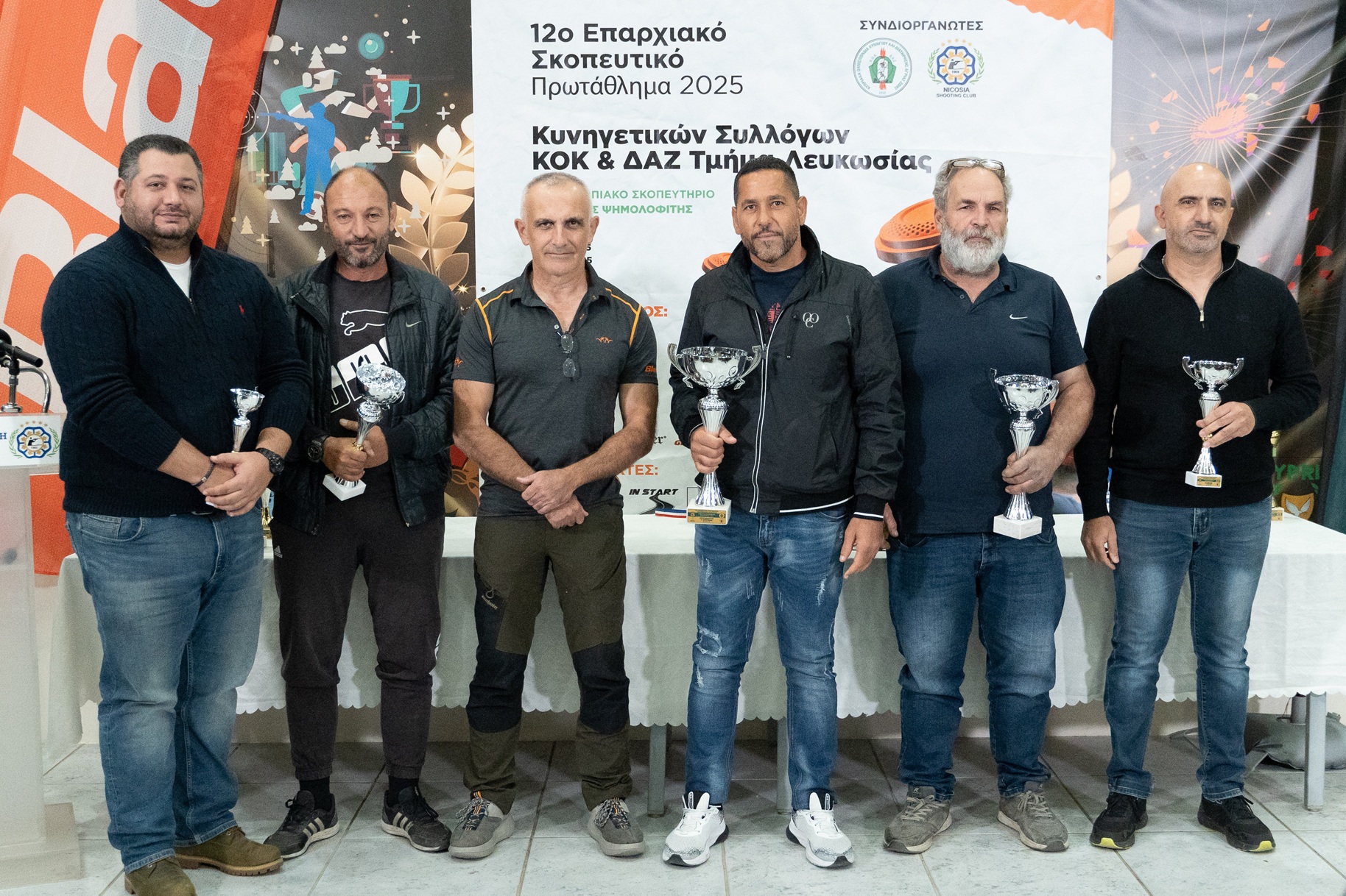 Στο φετινό πρωτάθλημα, που για 12η συνεχή χρονιά, συνδιοργανώνεται από τη Σκοπευτική Οργάνωση Λευκωσίας και τη ΚΟΚ & ΔΑΖ Λευκωσίας, πρωταθλήτρια ανεδείχθη η ομάδα του Κυνηγετικού Συλλόγου Φτέλια Γερίου με ρεκόρ νικών, πέντε νίκες στους πέντε αγώνες! Δευτεραθλήτρια ήταν η Φραγκολίνα Καϊμακλίου, ενώ στην τρίτη θέση υπήρξε ισοβαθμία των ομάδων “Άραμης” Μιτσερού και “Λαότρυπα” Κορμακίτη. Πρωταθλητής κυνηγών για το 2025 είναι ο Στέλιος Στυλιανού, μέλος της πρωταθλήτριας ομάδας, ο οποίος αγωνίζεται στην Α’ κατηγορία, ενώ στους σκοπευτές το φετινό πρωτάθλημα κατέκτησε ο Γιώργος Κλεάνθους και στους έφηβους ο νεαρός Ανδρέας Τρύφωνος. Στις άλλες κατηγορίες των κυνηγών, ο Κυριάκος Κυλίλης (Φτέλια Γερίου) πρώτευσε στην επίλεκτη κατηγορία, ο Κώστας Λαός (Λαότρυπα Κορμακίτη) στη Β’ κατηγορία και ο Χαράλαμπος Βασιλείου (Άραμης Μιτσερού) στην Γ’ κατηγορία. Ο Ηλίας Χαραλάμπους (Πλουμί Κοκκινοτριμιθιάς) πρώτευσε στους βετεράνους κυνηγούς και ο Ευάγγελος Καραβόλιας (Κ.Ε. Λευκωσίας) στους βετεράνους σκοπευτές. Στη διάρκεια της τελετής, βραβεύτηκαν οι ακόλουθοι σε κάθε κατηγορία: