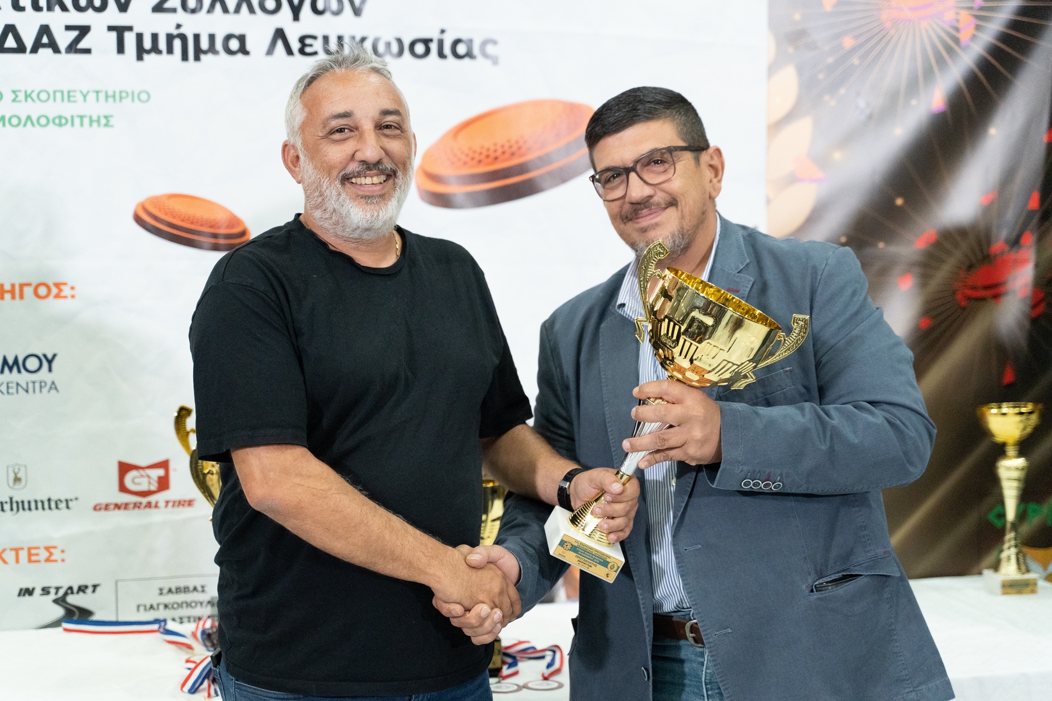4. Ο πρωταθλητής των σκοπευτών Γιώργος Κλεάνθους, παραλαμβάνει το έπαθλό του από τον Παναγιώτη Θεοφάνους εκπρόσωπο της εταιρίας Οικονόμου Ακουστικά Κέντρα