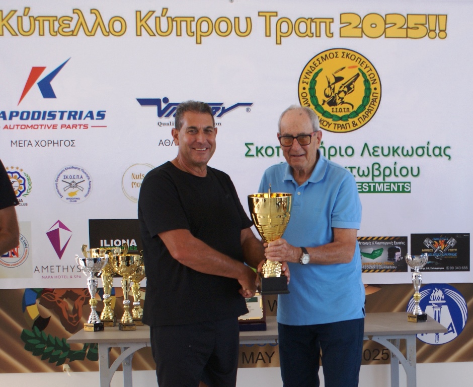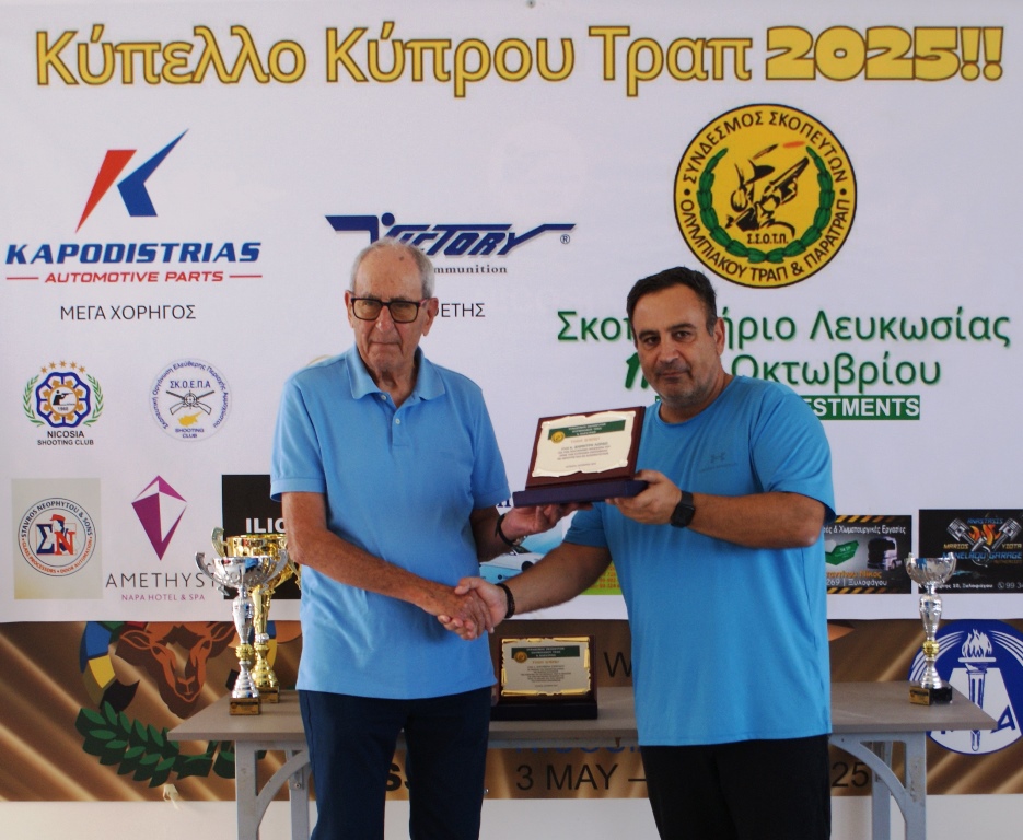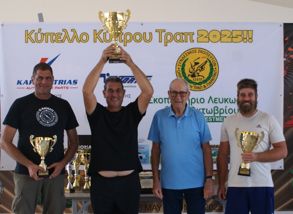 Ο διεθνής σκοπευτής της Σκοπευτικής Οργάνωσης Λευκωσίας Παύλος Κουτσόφτας, είναι ο φετινός “Κυπελλούχος Τραπ”, ο οποίος ήταν ο νικητής στον τελικό του Κυπέλλου Κύπρου Τραπ 2025, που έγινε στο Ολυμπιακό σκοπευτήριο “Λάκης Ψημολοφίτης”, το περασμένο Σαββατοκύριακο 11 και 12 Οκτωβρίου. Στο τραπ γυναικών κέρδισε η Δέσποινα Τσαγγαρίδου της ΣΚΟΛΕΥ με 96/125, στους έφηβους ο νεαρός Κυριάκος Παπαζαχαρίου της ΣΚΟΛΑΡ με 105/125 και στο παρατράπ ο Γιώργος Παπαηλία της ίδιας Οργάνωσης με 94/125. Μέγας χορηγός της διοργάνωσης ήταν η εταιρεία ΧΡ. ΚΑΠΟΔΙΣΤΡΙΑΣ & ΥΙΟΙ ΛΤΔ, Εισαγωγείς και Διανομείς εξαρτημάτων αυτοκινήτων, ενώ η εταιρεία G&L CALIBERS LTD, κατασκευαστές των φυσιγγίων VICTORY, αθλοθέτησαν με βαρύτιμα έπαθλα τον αγώνα. Οι αθλητές του τραπ, με ομόφωνη απόφαση, αφιέρωσαν τη φετινή διοργάνωση στην κ. Ελευθερία Στεργίδου, πρώτη λειτουργό της Σκοπευτικής Ομοσπονδίας Κύπρου, η οποία αφυπηρέτησε πρόσφατα.