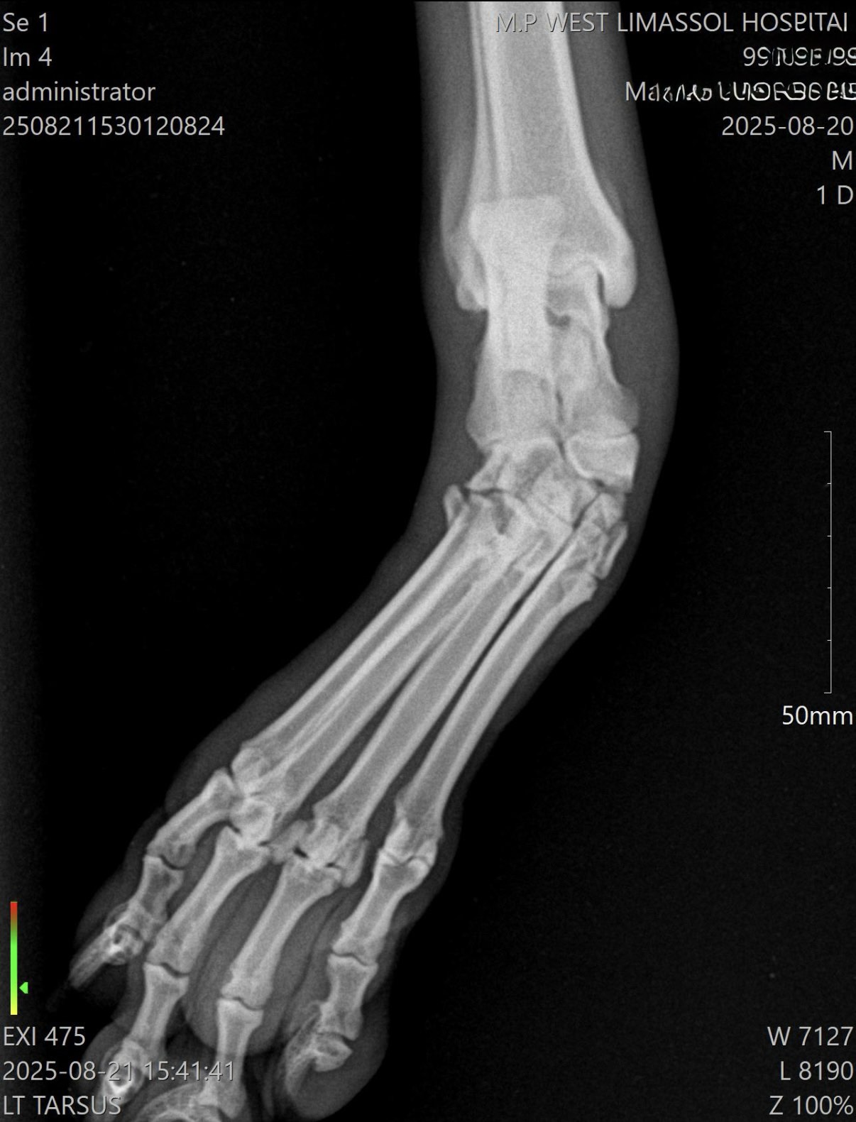 Η περίπτωση αυτή αναδεικνύει τη σημασία της προηγμένης απεικόνισης στη διάγνωση πολύπλοκων τραυματισμών του ταρσού και καταδεικνύει ότι η μερική αρθρόδεση ταρσού μπορεί να αποκαταστήσει με επιτυχία τη λειτουργικότητα σε σκύλους εργασίας. Με σωστό χειρουργικό σχεδιασμό και σταθερή οστεοσύνθεση, ακόμη και ασθενείς με σοβαρές κακώσεις μπορούν να επιστρέψουν σε υψηλού επιπέδου δραστηριότητες.