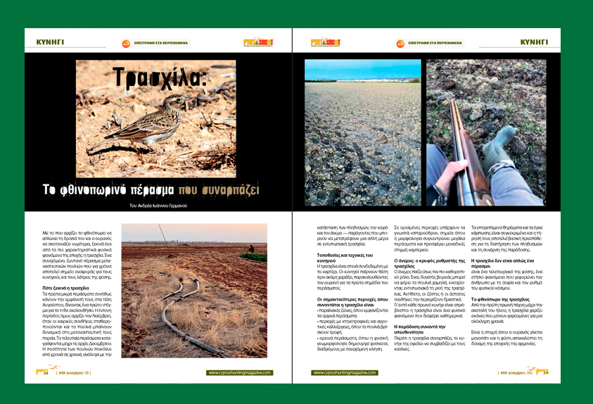 Στο προηγούμενο άρθρο μου που δημοσιεύτηκε στο τεύχος Αυγούστου είχα αναφερθεί στο κυνήγι του τρυγονιού και πώς αυτό άλλαξε, προς το χειρότερο δυστυχώς, τα τελευταία χρόνια με αποτέλεσμα να φτάσουμε στη σημερινή καταθλιπτική κατάσταση.