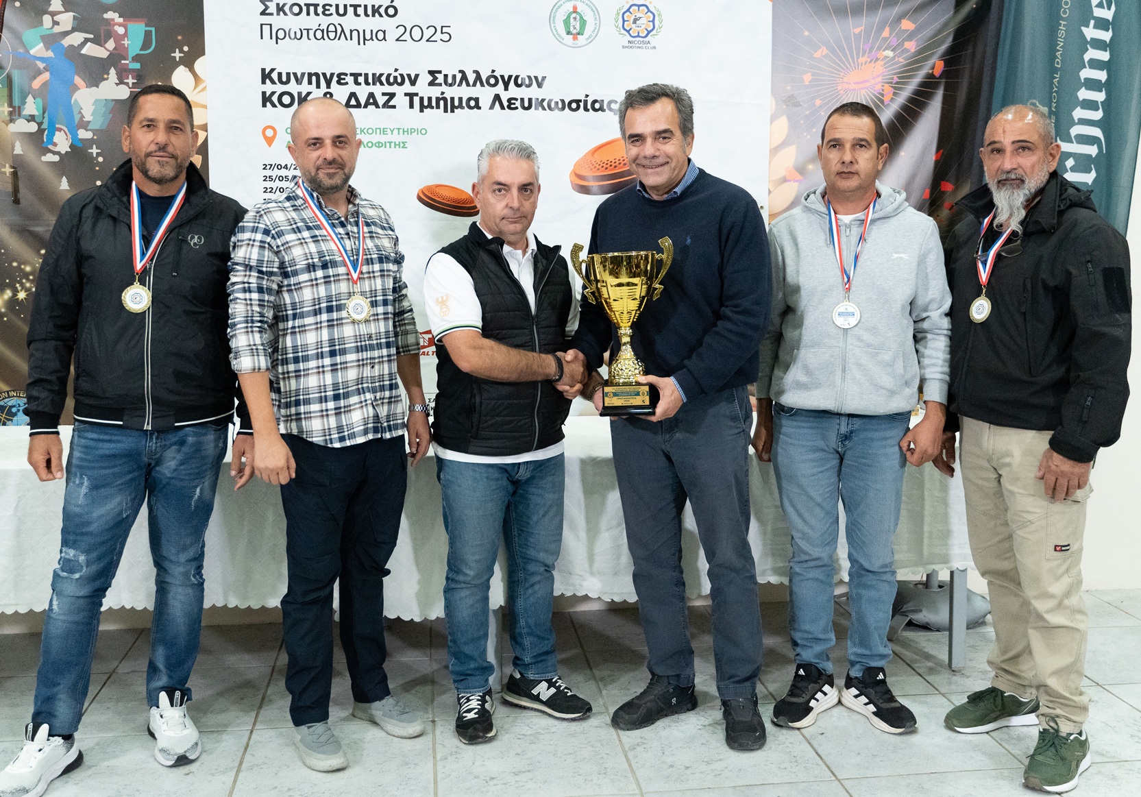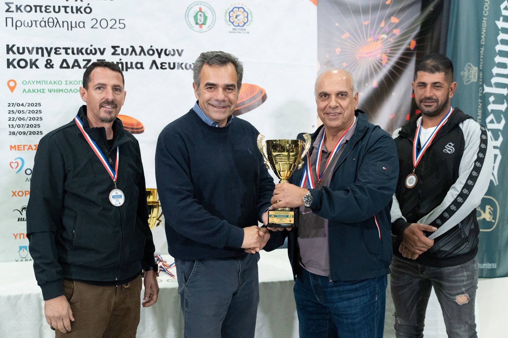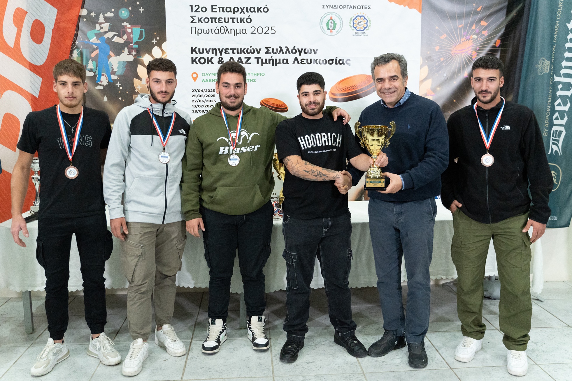 Στο φετινό πρωτάθλημα, που για 12η συνεχή χρονιά, συνδιοργανώνεται από τη Σκοπευτική Οργάνωση Λευκωσίας και τη ΚΟΚ & ΔΑΖ Λευκωσίας, πρωταθλήτρια ανεδείχθη η ομάδα του Κυνηγετικού Συλλόγου Φτέλια Γερίου με ρεκόρ νικών, πέντε νίκες στους πέντε αγώνες! Δευτεραθλήτρια ήταν η Φραγκολίνα Καϊμακλίου, ενώ στην τρίτη θέση υπήρξε ισοβαθμία των ομάδων “Άραμης” Μιτσερού και “Λαότρυπα” Κορμακίτη. Πρωταθλητής κυνηγών για το 2025 είναι ο Στέλιος Στυλιανού, μέλος της πρωταθλήτριας ομάδας, ο οποίος αγωνίζεται στην Α’ κατηγορία, ενώ στους σκοπευτές το φετινό πρωτάθλημα κατέκτησε ο Γιώργος Κλεάνθους και στους έφηβους ο νεαρός Ανδρέας Τρύφωνος. Στις άλλες κατηγορίες των κυνηγών, ο Κυριάκος Κυλίλης (Φτέλια Γερίου) πρώτευσε στην επίλεκτη κατηγορία, ο Κώστας Λαός (Λαότρυπα Κορμακίτη) στη Β’ κατηγορία και ο Χαράλαμπος Βασιλείου (Άραμης Μιτσερού) στην Γ’ κατηγορία. Ο Ηλίας Χαραλάμπους (Πλουμί Κοκκινοτριμιθιάς) πρώτευσε στους βετεράνους κυνηγούς και ο Ευάγγελος Καραβόλιας (Κ.Ε. Λευκωσίας) στους βετεράνους σκοπευτές. Στη διάρκεια της τελετής, βραβεύτηκαν οι ακόλουθοι σε κάθε κατηγορία: