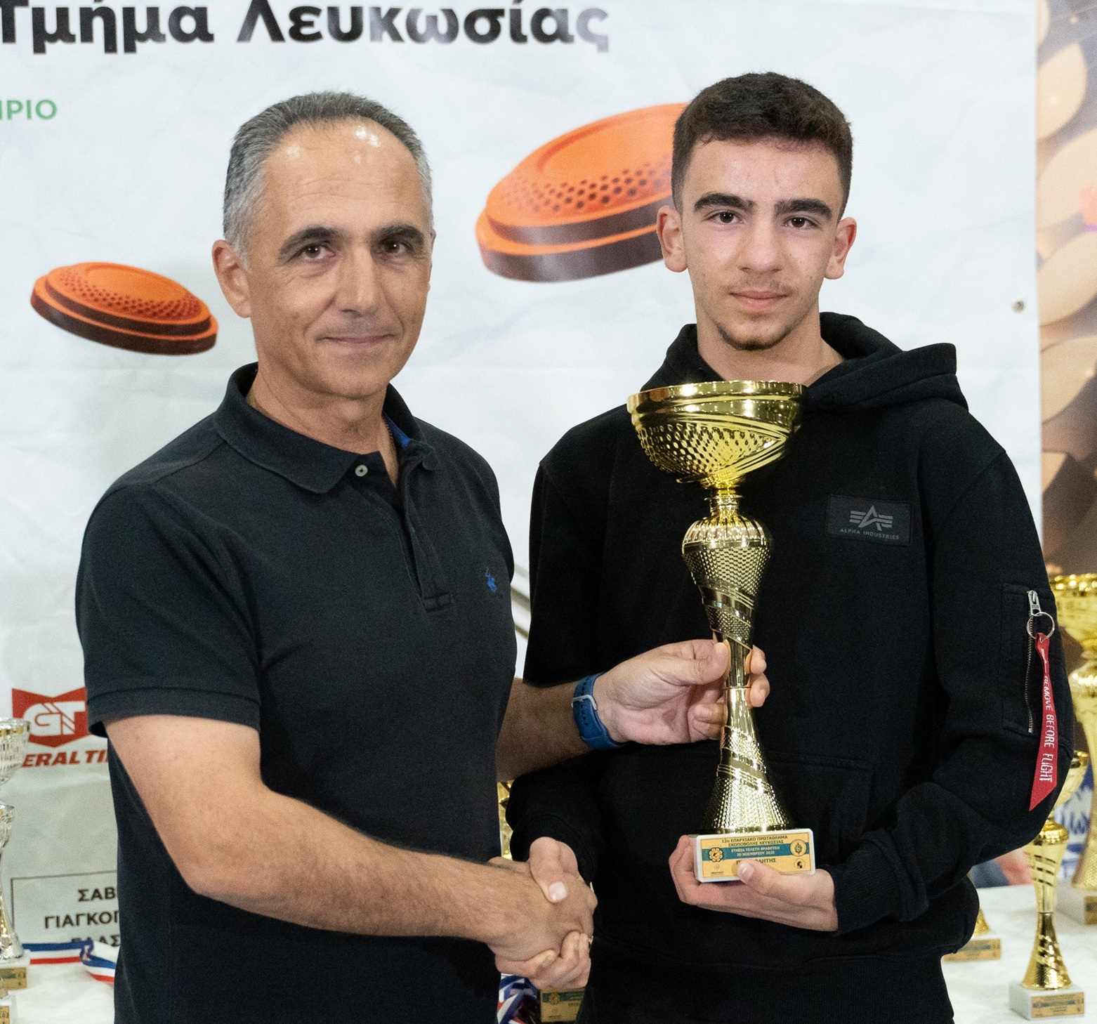 3. Ο πρωταθλητής των εφήβων Ανδρέας Τρύφωνος, παραλαμβάνει το έπαθλό του από τον γραμματέα της ΣΚΟΛΕΥ Παντελή Παντελίδη