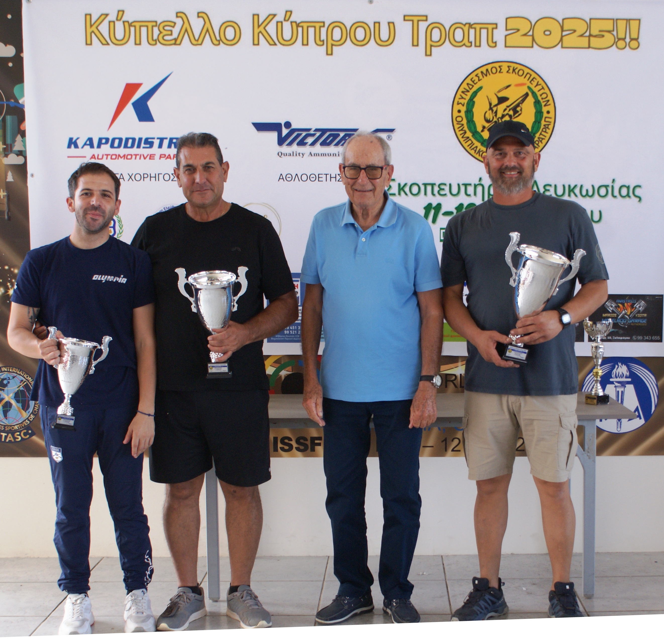 Με την ολοκλήρωση των 125 δίσκων του προκριματικού, ο Γιάννης Αηλιώτης της ΣΚΟΕΠΑ πέρασε επικεφαλής στον τελικό με 119 επιτυχίες και ακολούθησαν, ο συναθλητής του Ανδρέας Μακρής και ο Παύλος Κουτσοόφτας της ΣΚΟΛΕΥ με 116/125. Ο Πέτρος Αναστασίου της ΣΚΟΛΑΡ πέρασε με 115/125, ο Φρίξος Ορθοδόξου της ΣΚΟΛΕΥ με 113/125 και ο Χριστάκης Αλεξάνδρου της ΣΚΟΛΑΡ με 111/125. Ο τελευταίος περιορίστηκε στην 6η θέση με 15/25, ενώ πέμπτος τερμάτισε ο Γιάννης Αηλιώτης με 21/30 και τέταρτος ο Ανδρέας Μακρής με 27/35. Ο Φρίξος Ορθοδόξου με 30/40 εξαφάλισε το χάλκινο μετάλλιο και οι Παύλος Κουτσόφτας και Πέτρος Αναστασίου οδηγήθηκαν στη “μονομαχία” για το χρυσό μετάλλιο, η οποία κράτησε την αγωνία των θεατών μέχρι την τελευτάια “μονοντουφεκιά” όπου πιο εύστοχος ο Κουτσόφτας εξασφάλισε την πρώτη θέση και τον τίτλο του φετινού “Κυπελλούχου Τραπ 2025”, με 42 επιτυχίες, έναντι 41/50 του Αναστασίου!