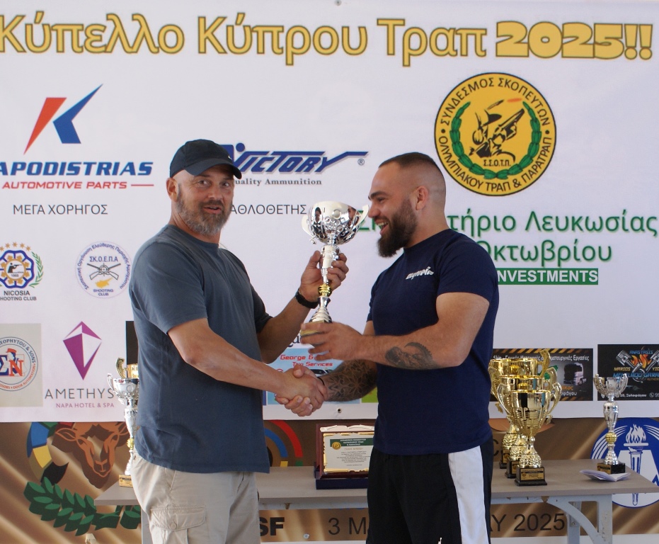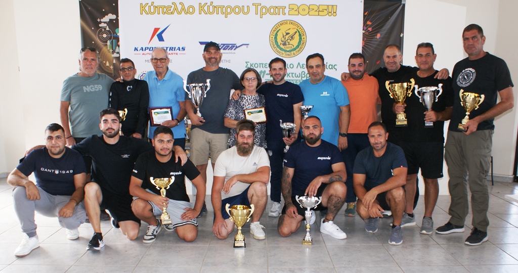 Ο διεθνής σκοπευτής της Σκοπευτικής Οργάνωσης Λευκωσίας Παύλος Κουτσόφτας, είναι ο φετινός “Κυπελλούχος Τραπ”, ο οποίος ήταν ο νικητής στον τελικό του Κυπέλλου Κύπρου Τραπ 2025, που έγινε στο Ολυμπιακό σκοπευτήριο “Λάκης Ψημολοφίτης”, το περασμένο Σαββατοκύριακο 11 και 12 Οκτωβρίου. Στο τραπ γυναικών κέρδισε η Δέσποινα Τσαγγαρίδου της ΣΚΟΛΕΥ με 96/125, στους έφηβους ο νεαρός Κυριάκος Παπαζαχαρίου της ΣΚΟΛΑΡ με 105/125 και στο παρατράπ ο Γιώργος Παπαηλία της ίδιας Οργάνωσης με 94/125. Μέγας χορηγός της διοργάνωσης ήταν η εταιρεία ΧΡ. ΚΑΠΟΔΙΣΤΡΙΑΣ & ΥΙΟΙ ΛΤΔ, Εισαγωγείς και Διανομείς εξαρτημάτων αυτοκινήτων, ενώ η εταιρεία G&L CALIBERS LTD, κατασκευαστές των φυσιγγίων VICTORY, αθλοθέτησαν με βαρύτιμα έπαθλα τον αγώνα. Οι αθλητές του τραπ, με ομόφωνη απόφαση, αφιέρωσαν τη φετινή διοργάνωση στην κ. Ελευθερία Στεργίδου, πρώτη λειτουργό της Σκοπευτικής Ομοσπονδίας Κύπρου, η οποία αφυπηρέτησε πρόσφατα.